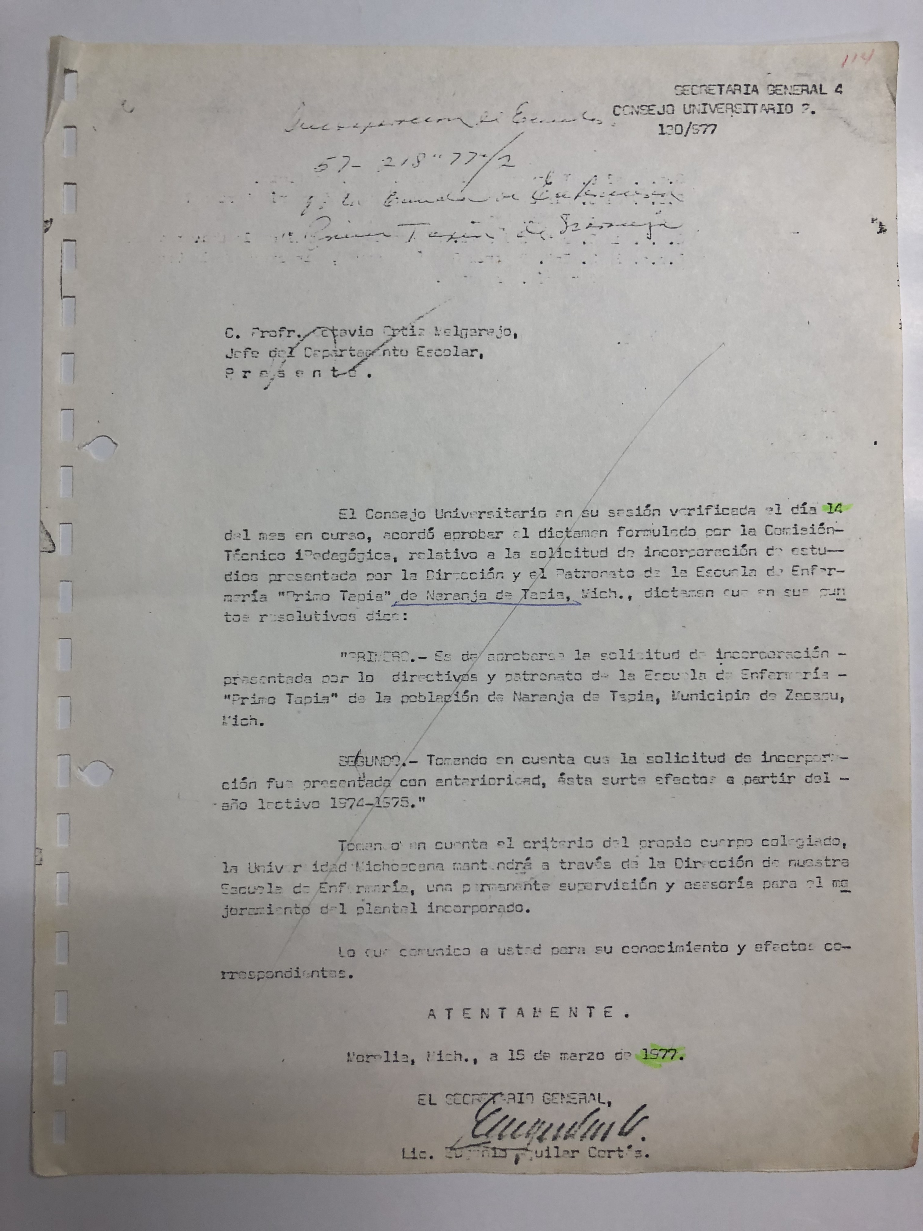 Email:dir.control.escolar.sria.admin@umich.mx Teléfono: (+52)(443) 322 3500 Extensión: 3018, Atención: 9:00 am - 3:00 pm Lunes-Viernes.