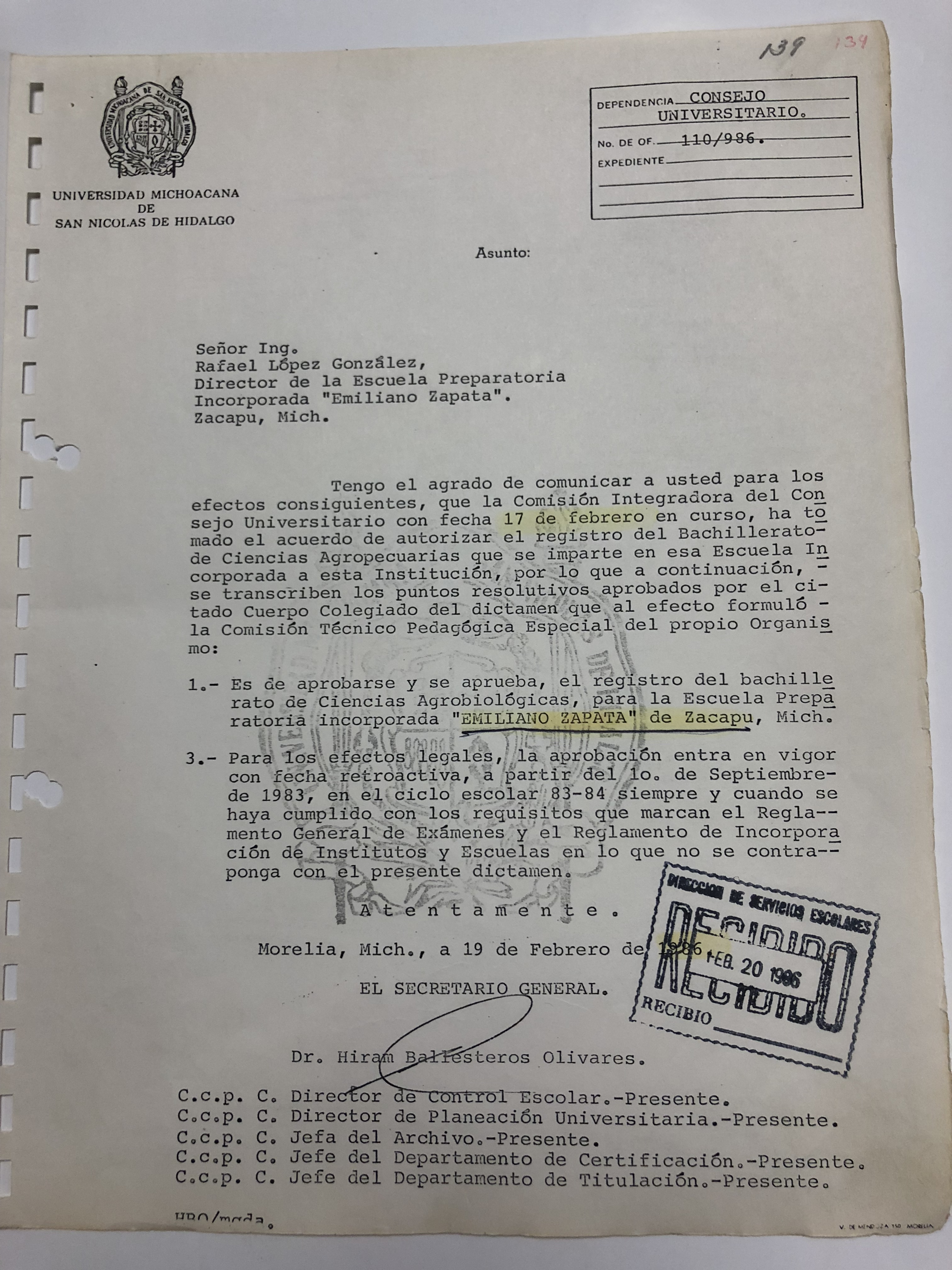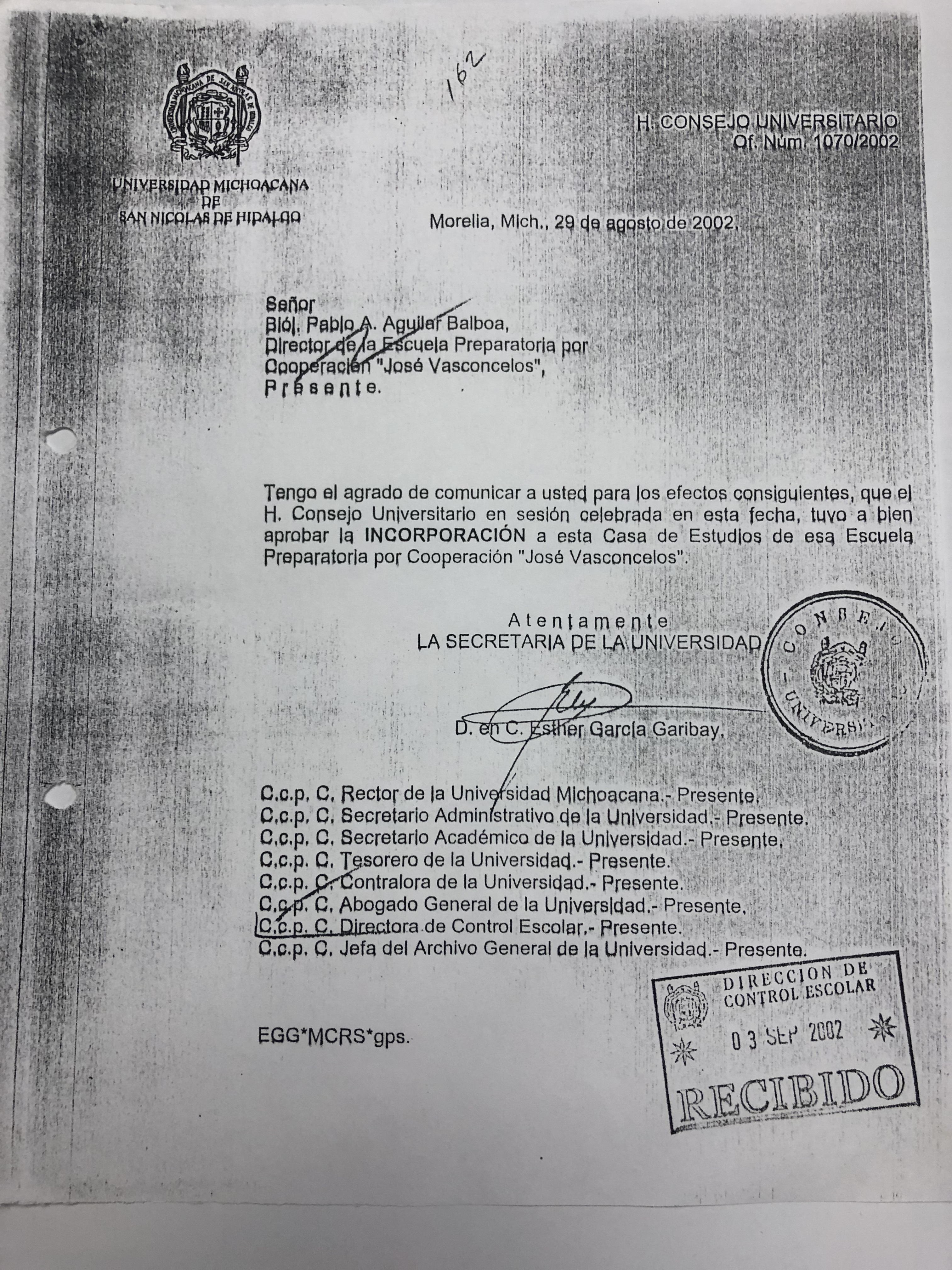 Domicilio: Avenida Francisco J. Múgica S/N Ciudad Universitaria, Edificio “Q”, Planta Baja, Dirección de Control Escolar, C.P. 58030, Morelia, Michoacán, México.