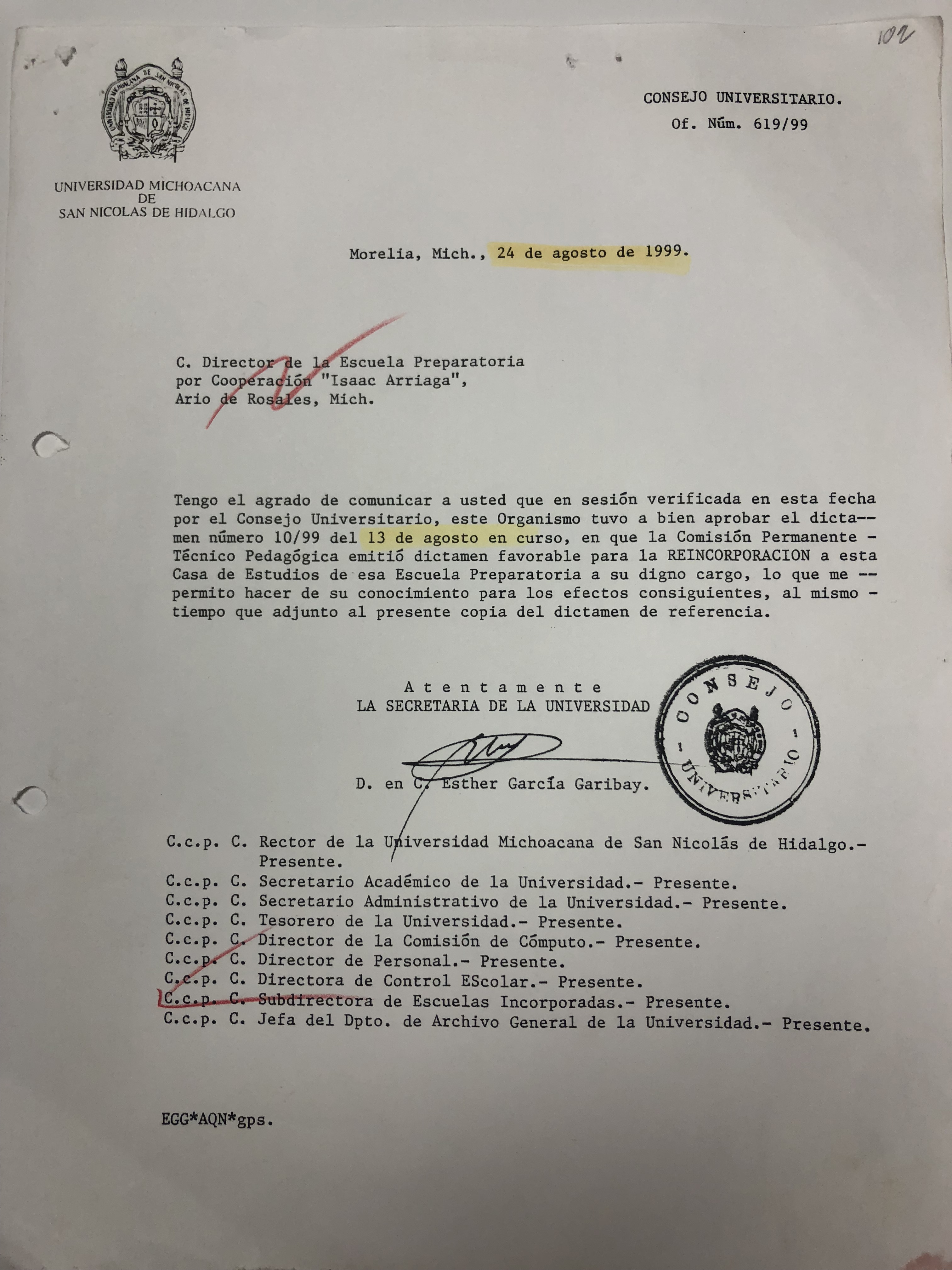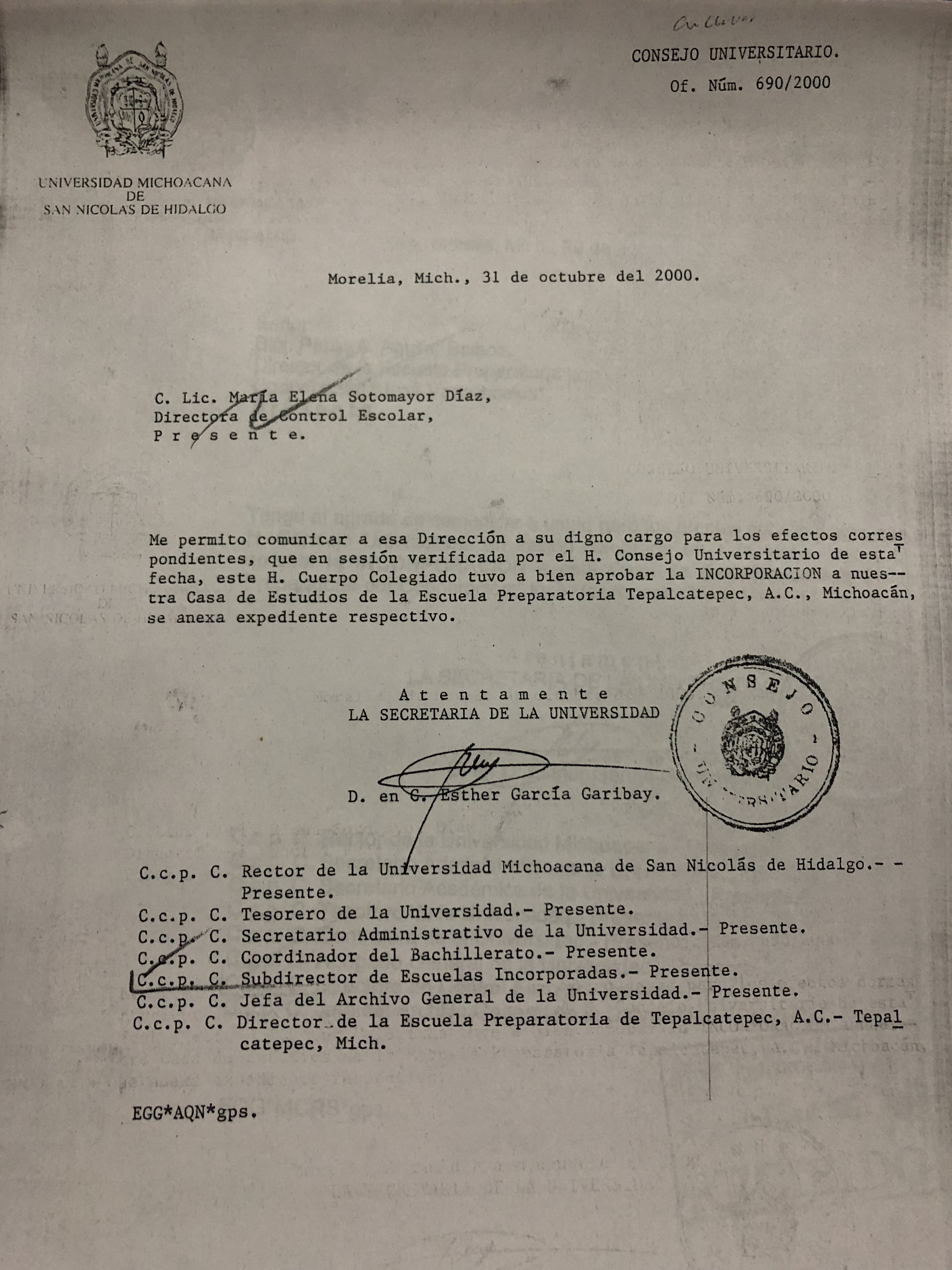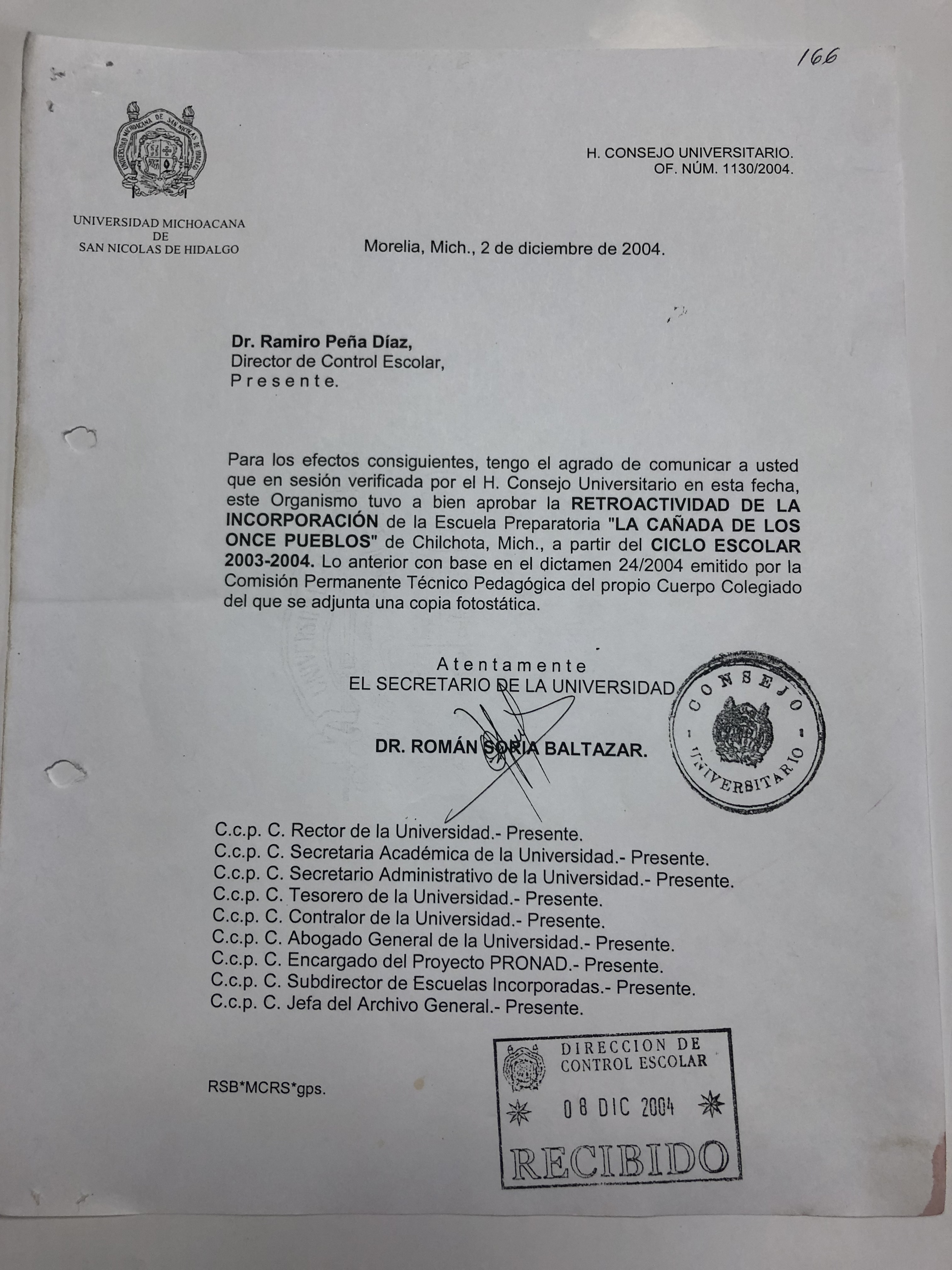 | Dirección de Control Escolar | 30/10/2024 |