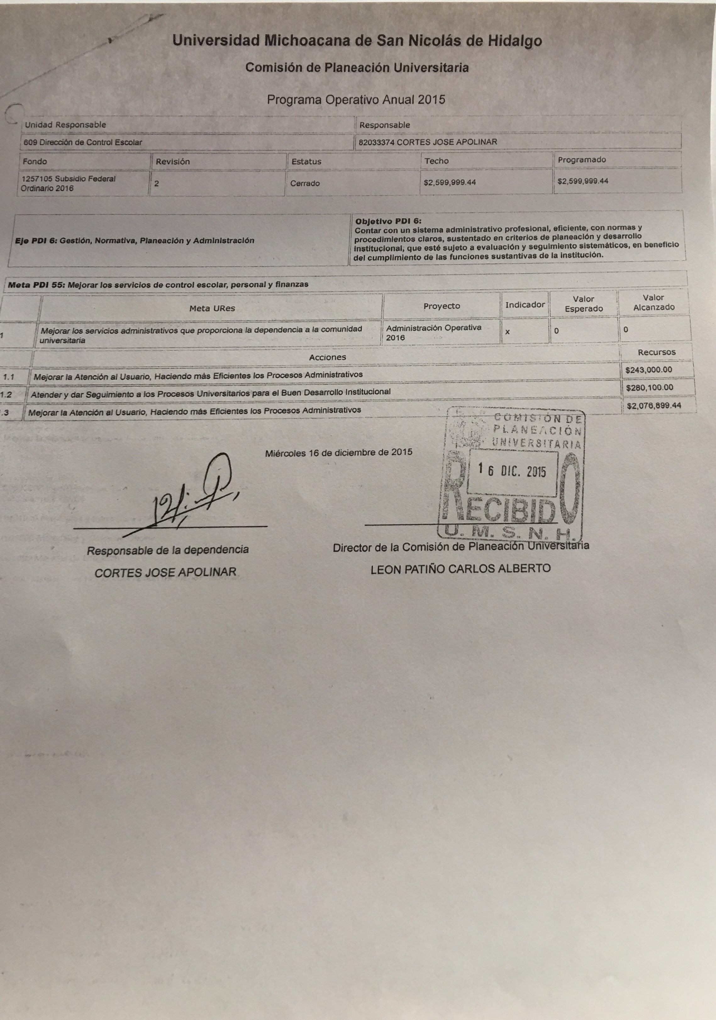 | Programa Operativo Anual 2016 | 16/12/2015 |
